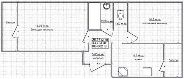 Выкладываю схему квартиры, двушки 43,7 кв.м, в 24 подъезде