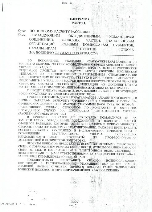 Не знаю как кому...а нам сказали, что телеграммы по выплатам по 1010 были только на гражданский персонал и центральный аппарат...все остальные перебьются, будет только 2 зарплаты и следующая в феврале