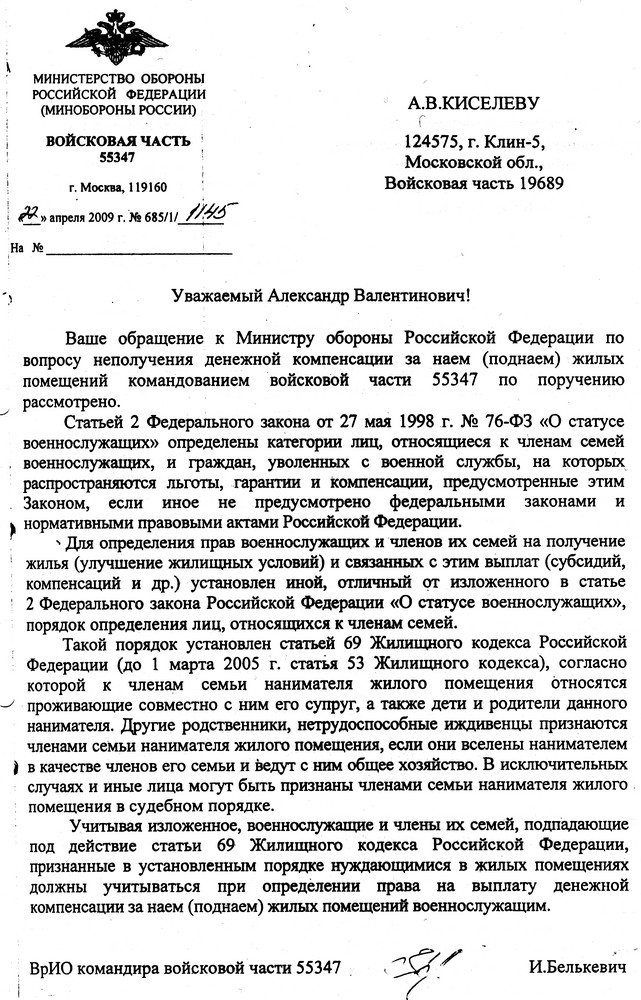 ЖК РФ, ФЗ "О статусе военнослужащих"