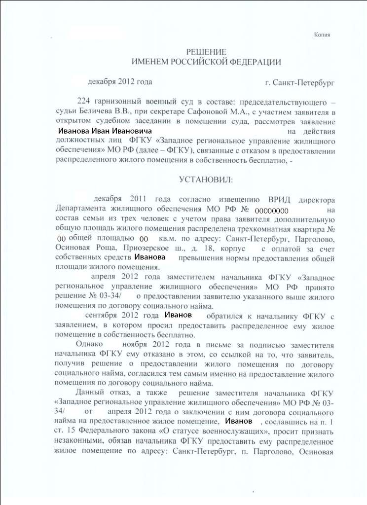 Выкладываю свое решение суда о передачи в собственность. решение положительное