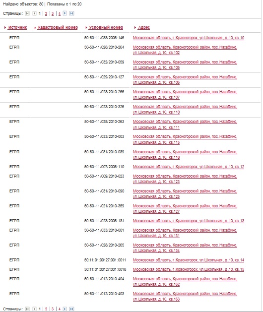 Поменяйте критерии поиска. Я нашёл 26 квартир.По запросу в росреестр с сайта on-line по адресу Нахабино Школьная 10 выдало всего одну квартиру,