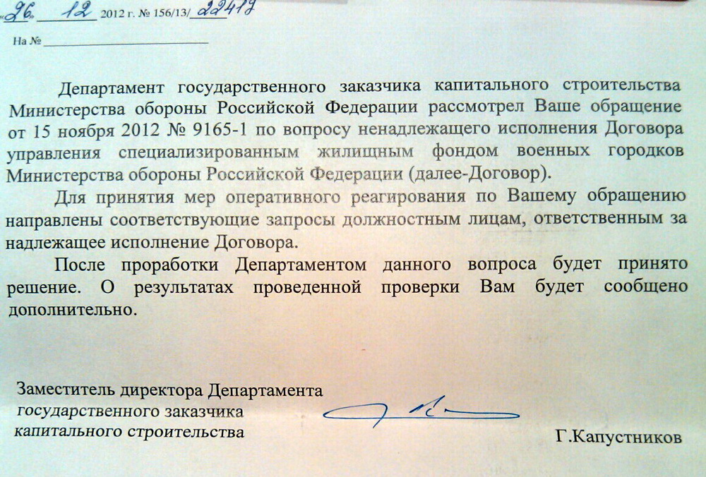 В связи с множеством нарушений и необходимости организационных моментов, прошу Вас лично посетить с проверкой Ваши подразделения в микрорайоне «Авиаторов» и наладить работу в соответствии с нормами и правилами, установленными законодательством РФ.
