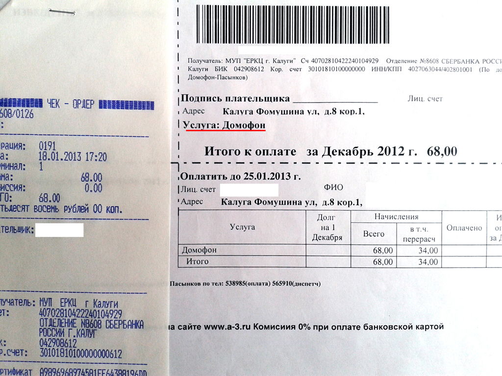 Не нахожу строки за домофон в общей квитанции.