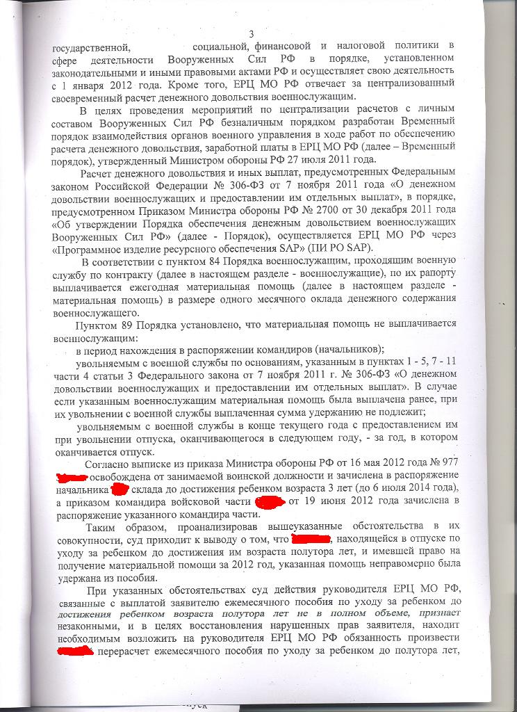а решение суда - для журнала "Военный крокодил" (если бы такой был), за исключением вывода о незаконности удержания МП из сумм пособия по уходу за ребенком