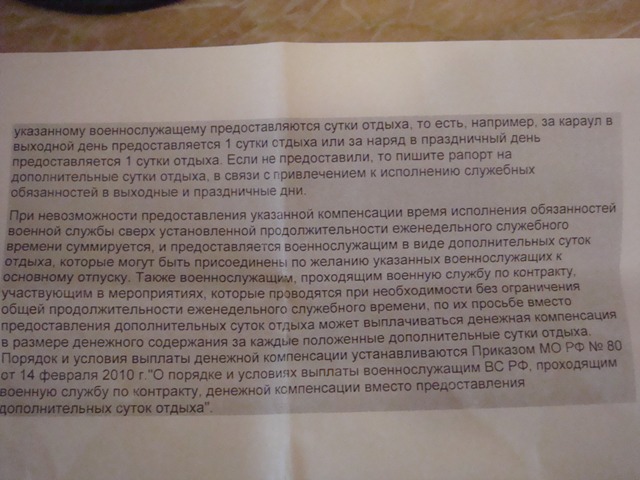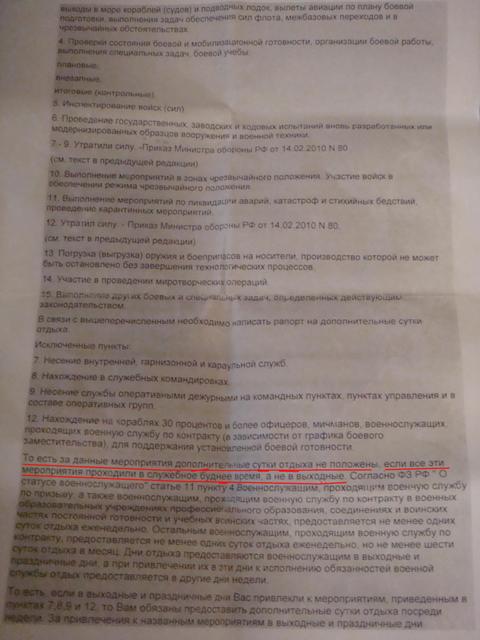 УТОЧНЕНИЕ Исключнныё пункты 7,8,9, 12 - за данные мероприятия сутки отдыха не положены, если они проходили в служебное буднее время. Т.е если внутренний наряд у в/сл по контракту по среди недели- отдых не положен.Так теперь получается, что военного можно в наряды через сутки гонять без всякой компенсации?