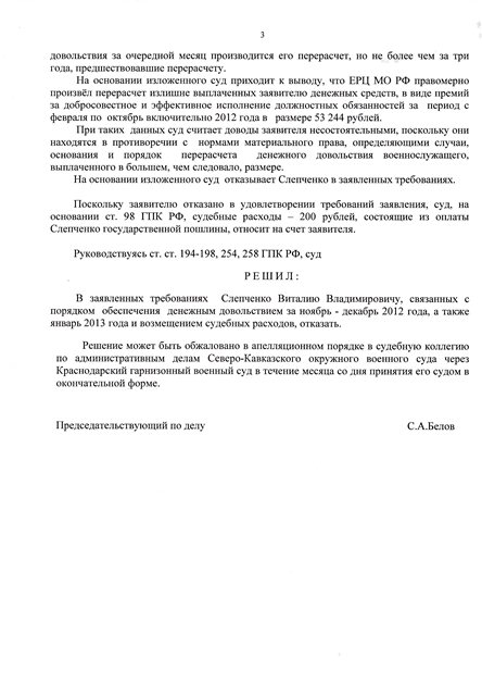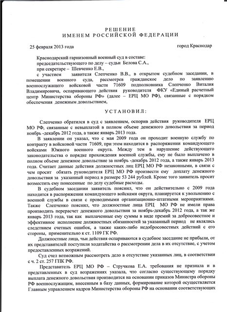 Сегодня забрал решение краснодарского суда, нет там никакого упоминания определения военной коллегии и вообще не понятно кто это решение придумал, может у них там стажеры практикуются:)