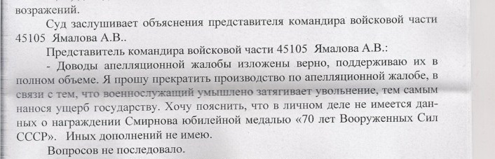 По моему мнению, основной упор необходимо было делать на незаконность приказа, самим фактом издания нарушены Ваши права на прохождение военной службы согласно Закона в соответствии со ст.59 Конституции РФ.