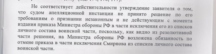 Кроме того Хмыров в своем ответе ссылается на факт самовольного оставления мною места воинской службы, предполагая, что в связи с этим выплата причитающегося мне денежного довольствия была приостановлена.