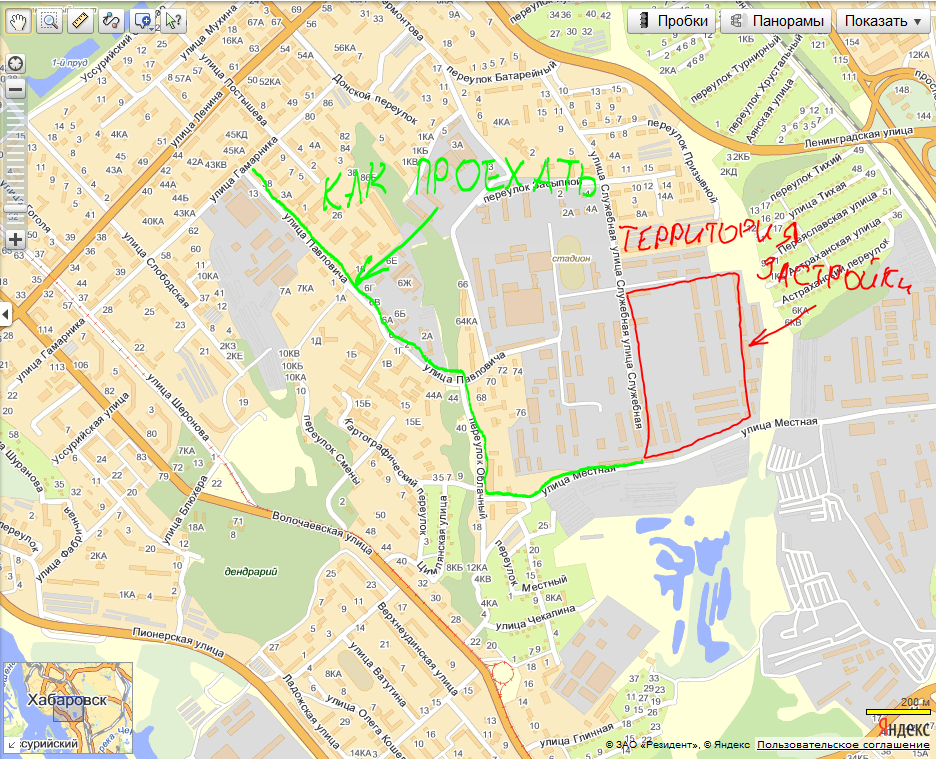 С ул. Гамарника на светофоре сворачиваешь на ул. Павловича, едишь вниз до самого конца. Сворачиваешь на право в Облачный переулок до здания Медтехника с зеленой крышей. За Медтехникой сворачиваешь на лево мимо гаражей и прямо до стройки... Как то так.