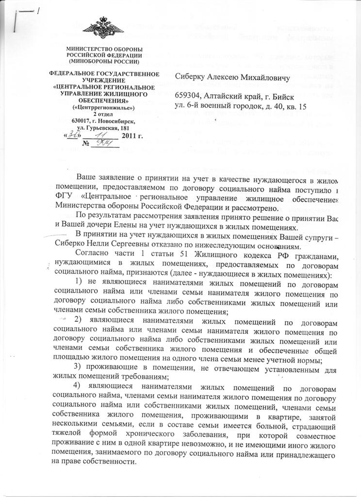 ЗДРАВСТВУЙТЕ всем.Срочно нужна помощь!Муж в распоряжении,выслуга 15 лет.В декабре 2012 г вступили в повторный брак после 5лет развода.Есть общий несовершеннолетний ребенок.Супруг собственности не имеет,с 2009 г прописан при в/ч .В июне 2012 г(до вступления в повторный брак ) я всвязи с продажей собственником жилья (братом), котором проживала и имела право пожизненного пользования,снялась с регистрационного учета и прописалась у добрых людей , где общее кол-во про писанных несколько десятков человек.Сына муж прописали с собой при в/ч.Не так давно муж подал изменение состава семьи в Востокрегионжилье на + 1 чел(меня),итого 3 чел.Считали ,что меня признают нуждающейся , т к в поданной собственником (братом)квартире было прописано еще несколько человек,и я не была обеспечена нормой жилья. Сегодня на частной консультации с юристом узнали такой факт , что если я выписалась из этой квартиры перед ее продажей самая крайняя,то в ДЖО Востокрегионжилье меня могу признать обеспеченой на всю общую площадь (48 кВ). Восток регион жилье еще решение не приняли.как я полагаю есть два варианта развития событий: 1) Меня не признают нуждающейся. 2) Включат в очередь и по получении извещения преподнести сюрприз 18+18+18-(48кв)=6 .Что можете сказать по такой ситуации ? и самый страшный вариант-мужа с таким раскладом исключат из очереди тоже?