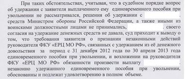 удержании из ДД, а не про удержании ЕПУ при увольнении - суд "перепялился" в формулировке в судебном решении, Т.Е. суд в решении должен был указать о взыскании незаконно удержанного денежного довольствия, а не о возврате ЕПУ - у вас отнимали именно ДД, а не ЕПУ!
