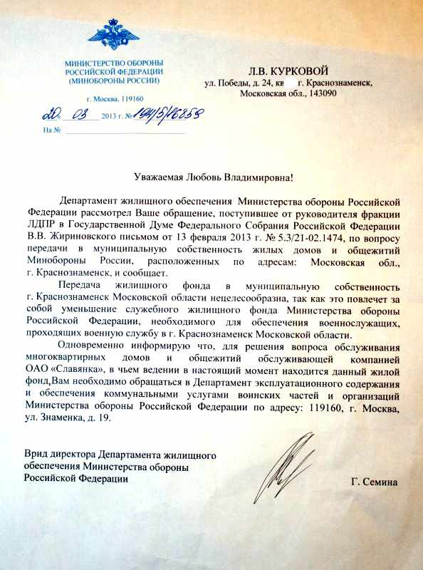 Re: Вопросы к Рабочей группе при МО РФ по жилищному обеспечению » 19 июл 2013, 10:09