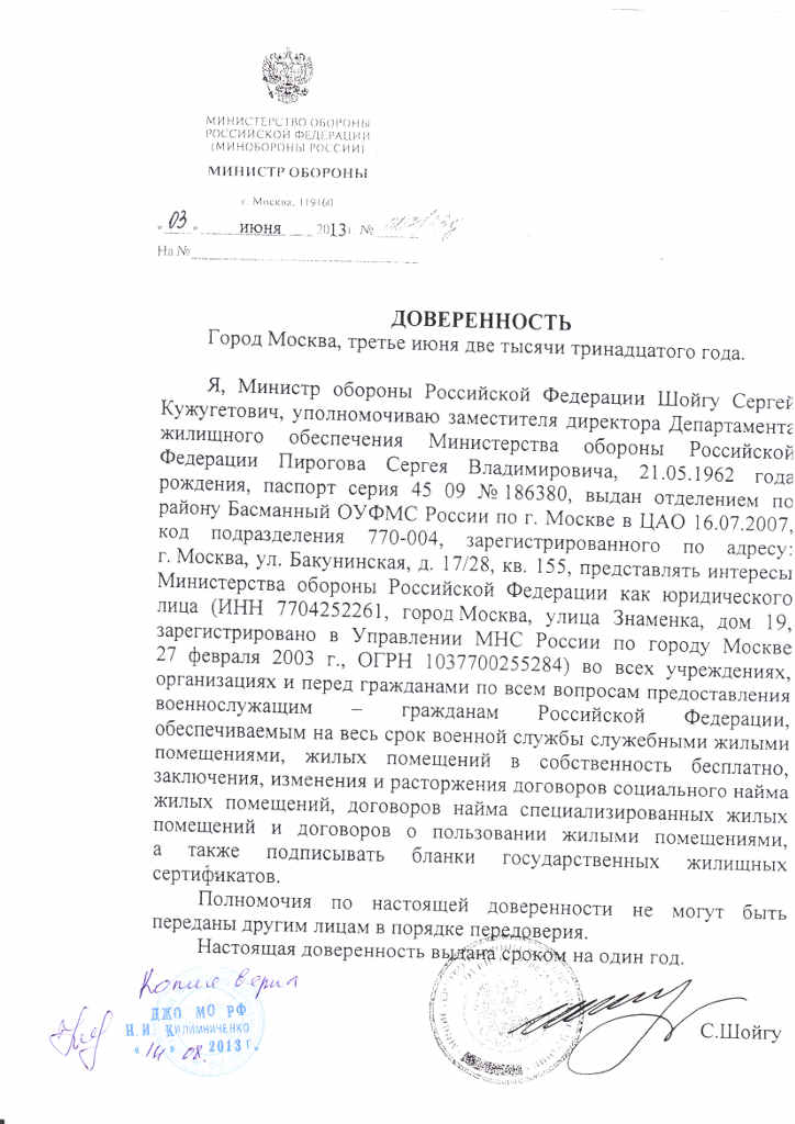 Сегодня перечитала решение у нас не прописано "в равных долях" указано, что квартиру распределяют в собственность мужу и членам семьи. Скорей всего переделывать решение, акт у нас тоже только на мужа.подскажите, у меня отказал РР из - за того, что не смог определить "вид регистрируемого права" (долевая собственность на всех членов семьи или на одного военнослужащего), так как в решении есть слова "в равных долях" а в акте принимающая жилое помещение сторона - я, в единственном числе. Поэтому регистратор усмотрела несоответствие - либо решение переделывать, либо акт. Получал доки в Хабаровске, лететь туда не вариант, письма уже 2 туда отправил с просьбой переделать документы, никаких ответов так и нет, по телефону вообще ничего невозможно выяснить. Написал по этому факту в Департамент в Москву, пока тоже ответа нет. Юриста в НСК который специализировался бы по таким вопросам найти не могу. Может кто подскажет чего?