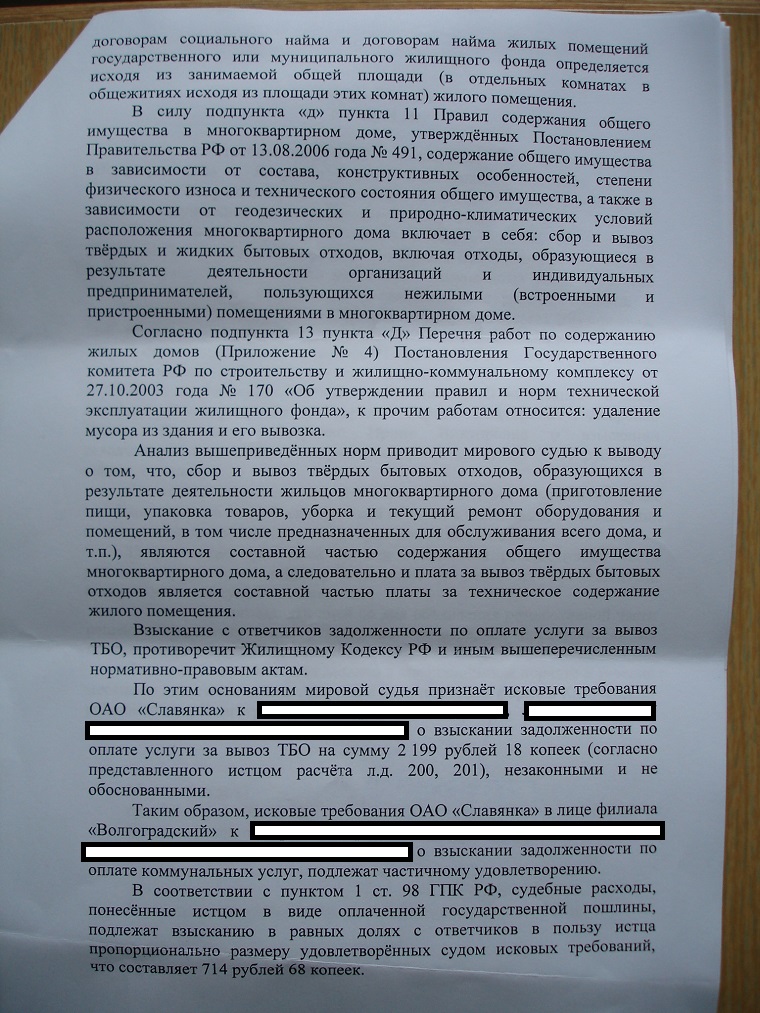 Проинформирую участников и этой темы, суд благополучно продул, суд не признал только сумму по отдельно взимаемой плате за ТБО. Мотивация пока для меня не ясна. Через 5 дней будет мотивированное решение, тогда и узнаю.