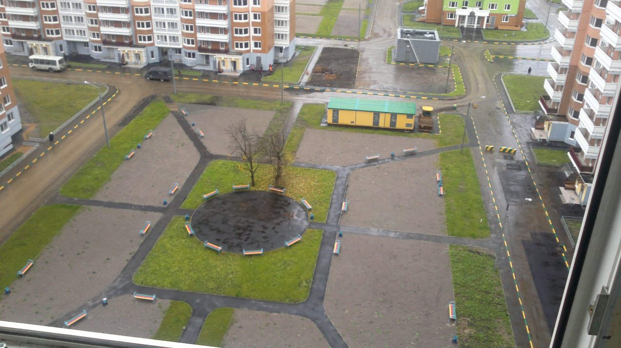 Внутри двора понаставили скамеек, возле соседней башни лежит гора детских горок и качелей. Значит потихоньку двигаемся в светлое будущее!
