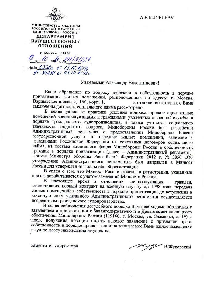 В случае запроса должностными лицами Департамента жилищного обеспечения Министерства обороны Российской Федерации и региональных управлений жилищного обеспечения Министерства обороны Российской Федерации дополнительных документов, не предусмотренных указанными пунктами Инструкции, просьба сообщать по телефону горячей линии 8-800-200-22-94.