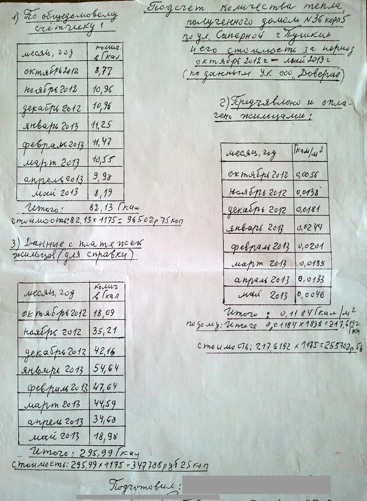 Для анализа ситуации было решено собрать данные о начислениях за отопление с жильцов нашего дома, что и было сделано. Данные были собраны из квитанций.