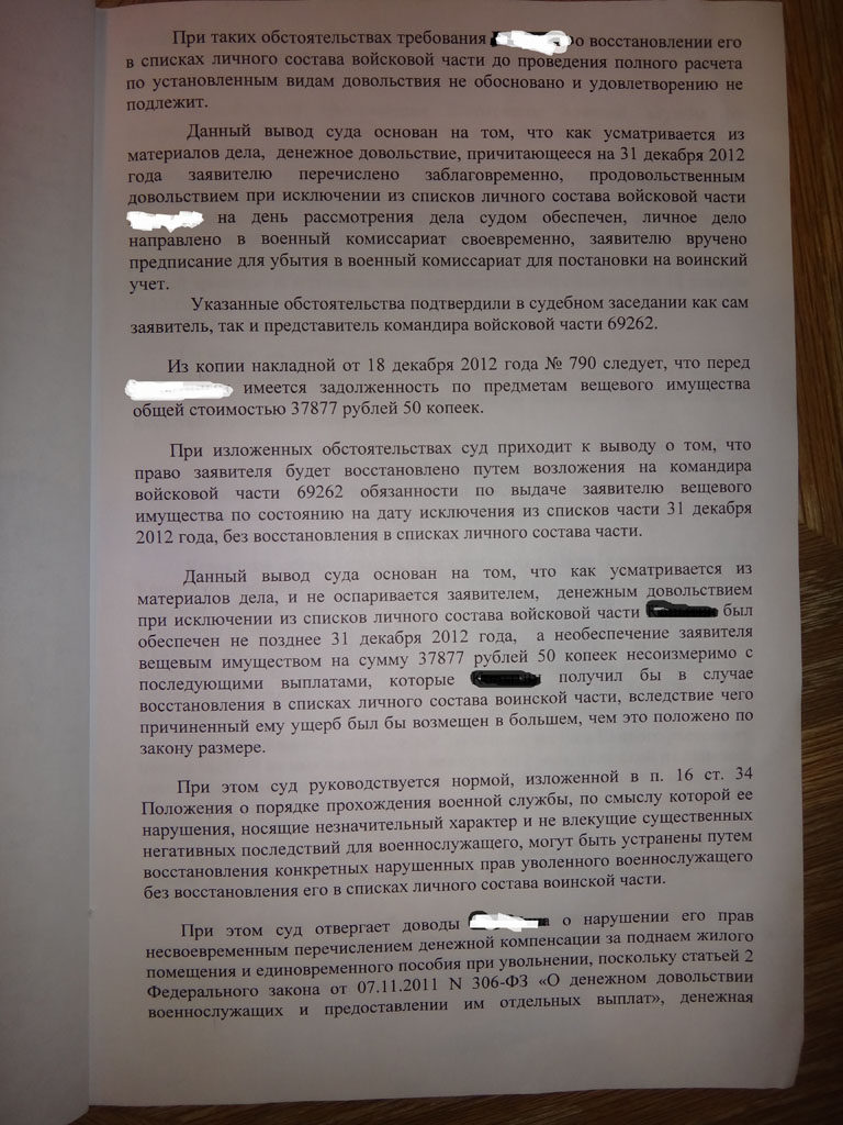 6. само командование признало свою вину, почему то суд только это не подтвердил решение как по пайку так и по вещевке.