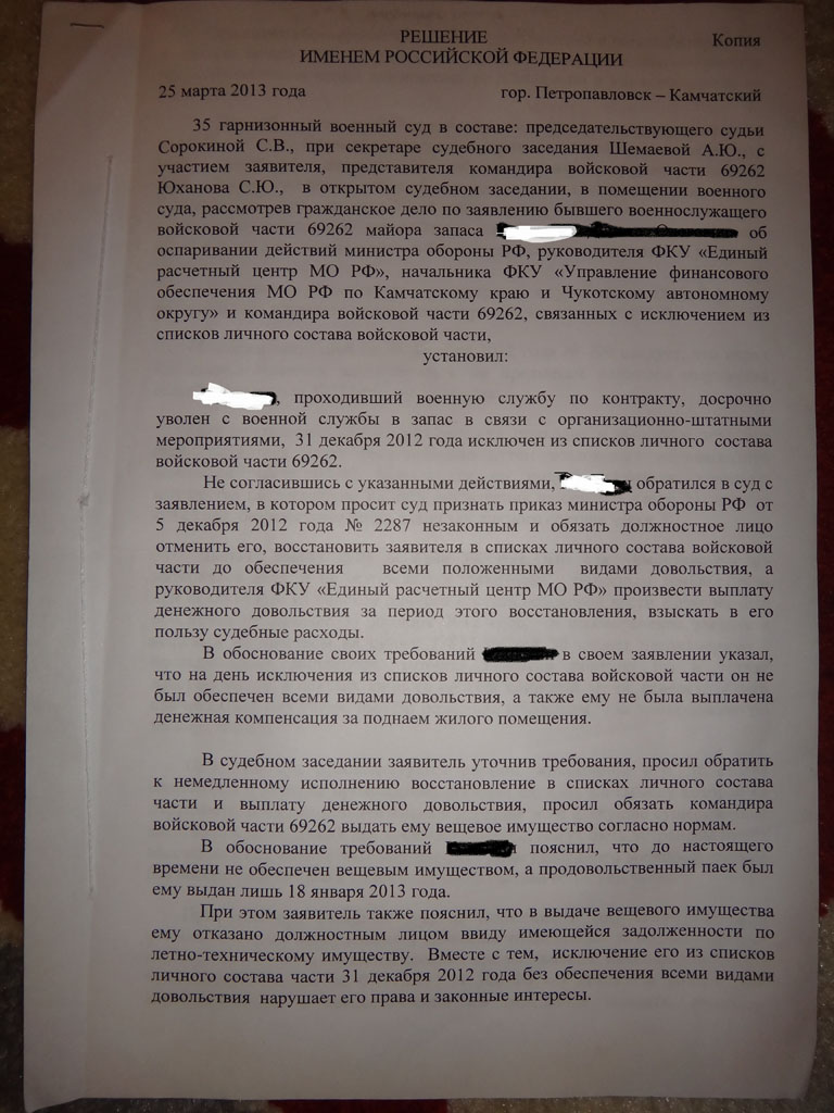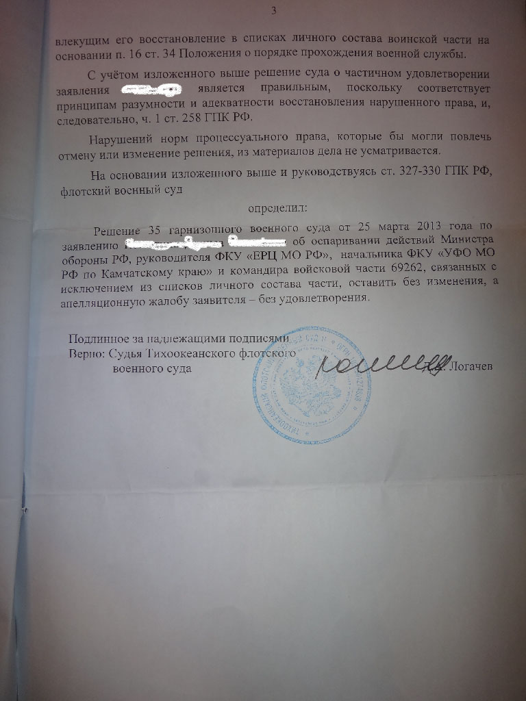 #8587Скидываю свое решение и апелляционное определение. Вчера отправил кассационную жалобу в Президиум Тихоокеанского военного суда. У кого какие соображения или вопросы пишите.