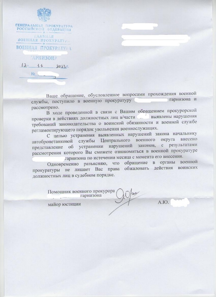 Отказники по МиЖ ЦВО - сегодня пришло письмо с местной прокуратуры по вопросу предоставления документов командованием части на основании телеграммы Начальника управления кадров ЦВО (о предоставлении документов на увольнение).