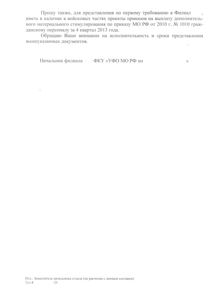 Взято с НачФина.Решение МО РФ о выплате в рамках приказа 2010 года №1010 от 17 декабря 2013 года за 4 квартал.