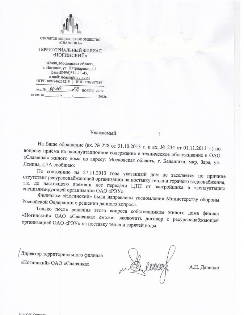 Указанное Вами письмо датировано 02.10.2013. После этого (09.10.2013) была комиссия в Заре. Затем Департамент эксплуатации письмом от 14.10.2013 все свалил на Департамент госзаказчика. А Департамент госзаказчика письмом от 01.11.2013 сообщил, что организованы мероприятия по устранению недастатков, но видимо "забыл" указать их перечень и сроки проведения. А потом мы узнали от Центра офицеров России, что банально нет денег.Я тоже был удивлен сегодня особенно после прочтения вашего ответа. Так как получил сегодня ответ от Департамента государственного заказчика капитального строительства.Ответ: "Бла, бла, бла необходимо провести ремонтные работы оборудования ЦТП. При этом затраты на необходимые вышеуказанные мероприятия не относятся к затратам на капитальное строительство, капитальный ремонт и соответственно не являются целевым расходованием денежных средств в рамках деятельности Департамента государственного заказчика капитального строительства. 19 августа 2013 года направленно обращение заместителю МО РФ Д.В.Булгакову с просьбой поручить Департаменту эксплуатационного содержания и обеспечения коммунальными услугами воинских частей и организаций Минобороны России организовать проведение необходимых работ. Заместитель директора ДГЗКС Г.Капустников"