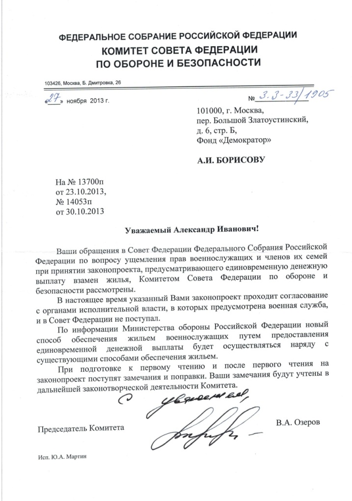 "Поручить Комитету Государственной Думы по обороне с учетом поступивших замечаний и предложений подготовить указанный законопроект к рассмотрению Государственной Думой (декабрь 2013 года)". А поступившие замечания и предложения - это видимо инициатива форумчан, доведенные через систему "Демократор". Мне пришел сегодня такой ответ.Уважаемые форумчани-время ещё есть.Сроки по внесению изменений в НА до 3 месяцев после второго чтения. Не волнуйтесь, берегите нервы и здоровье, они ещё понадобятся.