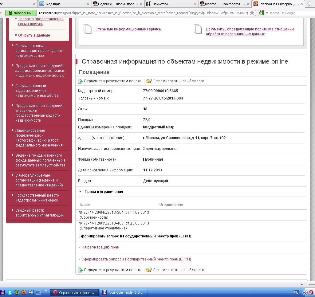 Данные с другой строчки, от источника "ЕГРП", а не "ГКН":