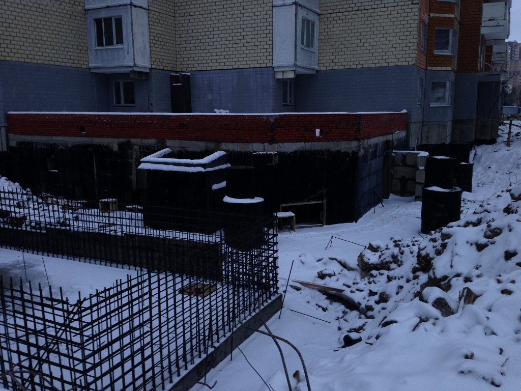 Корпус 1 - от подготовки котлована и вбивания свай (крыло дальнее от автопарка) до монтажа 3-го этажа (возле 2-го корпуса).
