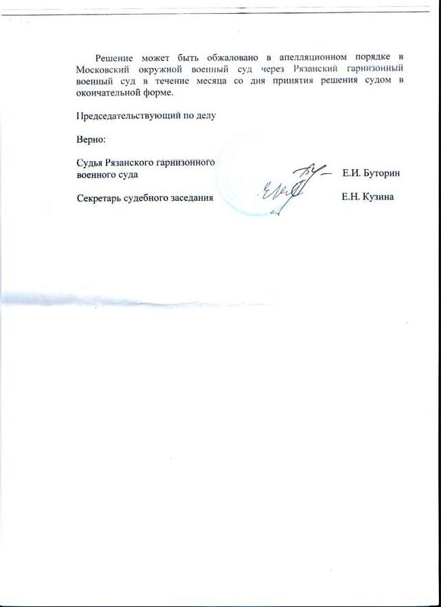На решение может быть подана апелляционная жалоба в Московский окружной военный суд через Московский гарнизонный военный суд в течение месяца со дня принятия решения судом в окончательной форме.