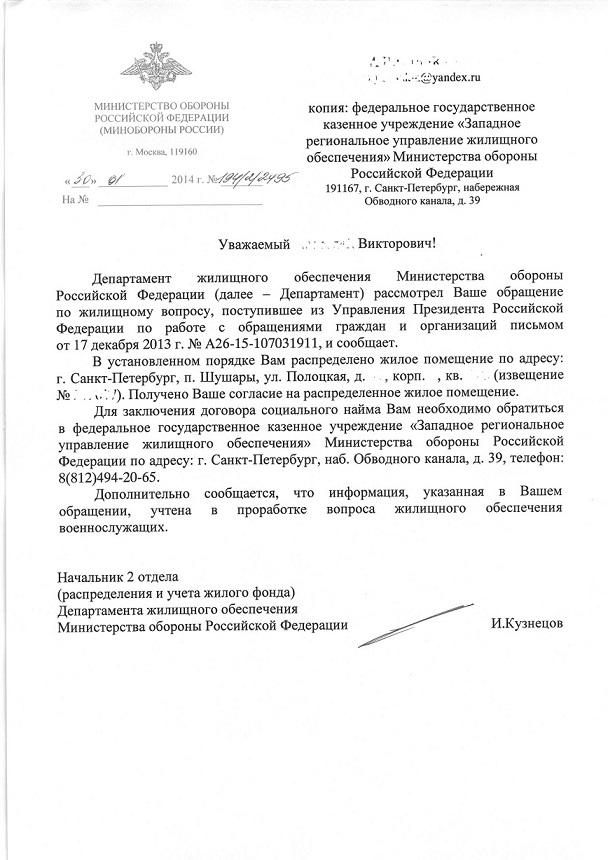 вот думаю, может надо было написать рапорт о предоставлении жилья в Курортном районе СПБ? или Адмиралтейском?
