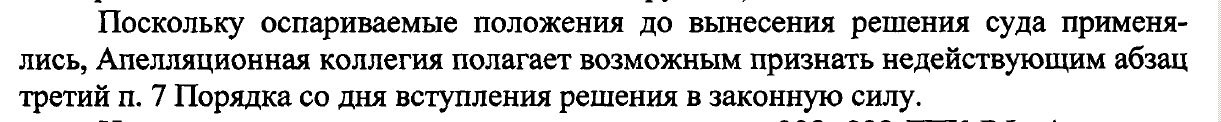 Судья, понимая, что решение ВС от 25.11.13г. будет обжаловано, судя по всему хотел знать - какой будет вердикт Апелл. кол. ВС и если признают абз.3 п.7 пр. 2700 незаконным, то с какого момента, абз.3 п.7 пр. 2700 незаконным(недействующим) признали с 25.02.2014г., как-то вот так однако...Ну тогда, говорит, подождём? Я говорю : -Ага! И вот, судя по Вашей информации, всё у меня должно получиться. Я надеюсь, что в скором времени меня должны вызвать опять в суд, для окончательного решения по моему делу. Я правильно понимаю?