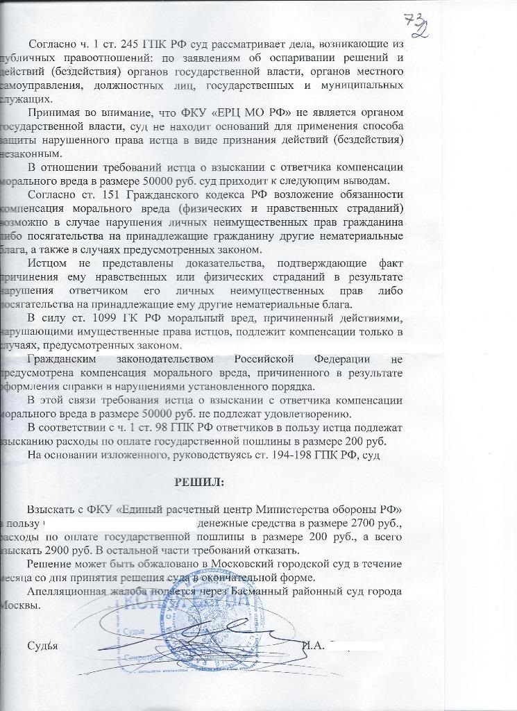 Наконец то получил решение суда (суд длился пол года), решение шло мне больше двух месяцев (точнее два месяца отправить не могли, и как видно из номерации страниц решение прям из дела выдернули).