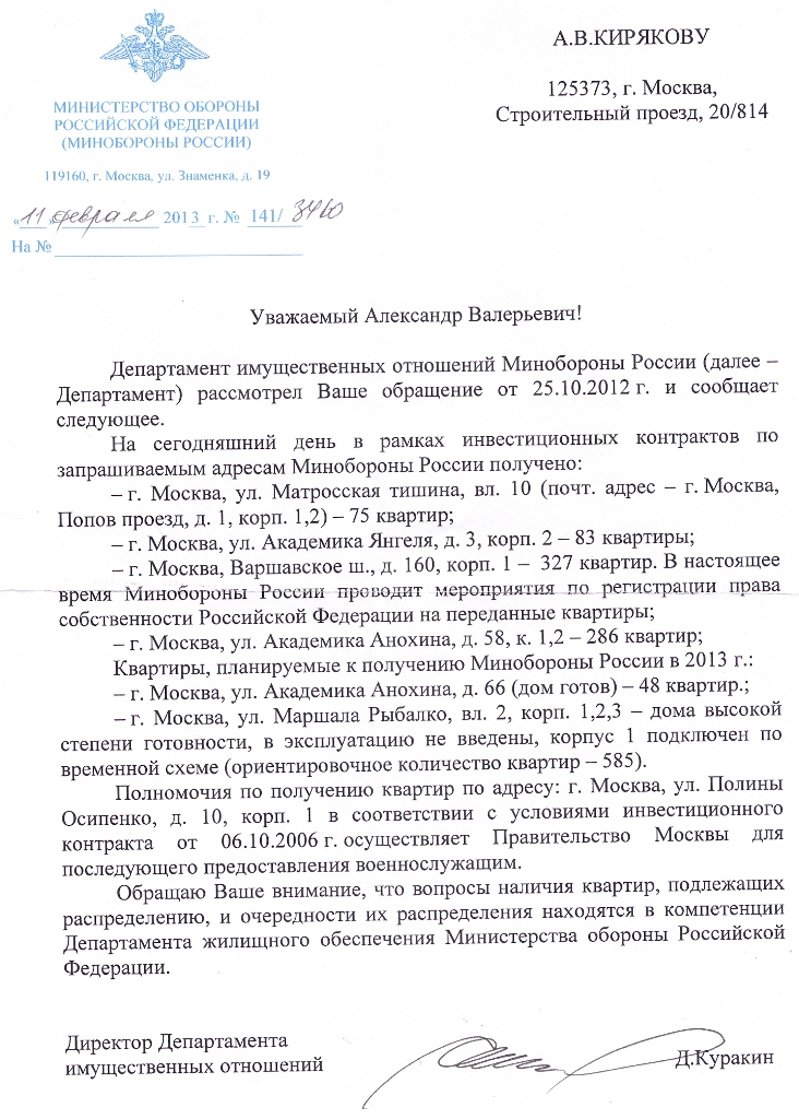 Вариант 2 строят сад и школу,на газончиках растет сирень,в 3 метрах фитнес-клуб и стоянка как "бонус" от министерства обороны (помечтаем).... И идут предложения по второму кругу. Кому предложат? А дойдет ли в этот раз очередь до нас,простых смертных? Мне кажется,навряд ли... а потому дождемся см. выше