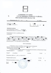 Архивная выписка из постановления о том, что квартира служебная