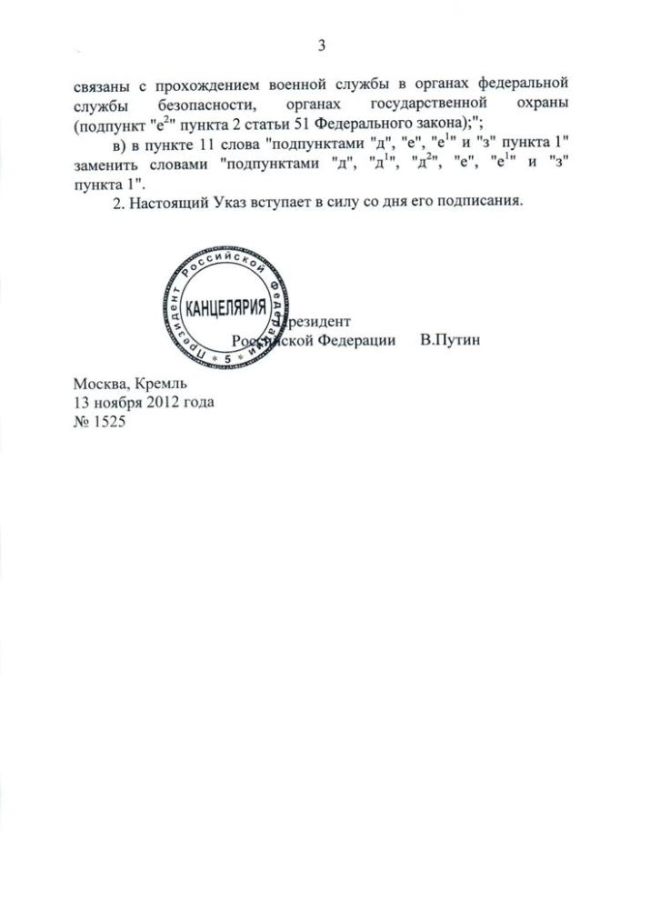 Указ Президента Российской Федерации от 13.11.2012 № 1525