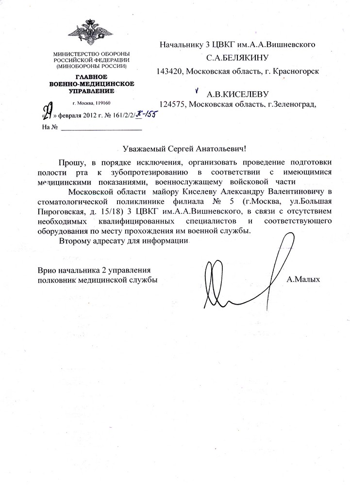 Ответ пришел от ГВМУ. Адрес отправителя или от кого : Отдел по распределению путевок <dsko1@mil.ru>.Ответ подписал Заместитель начальника управления