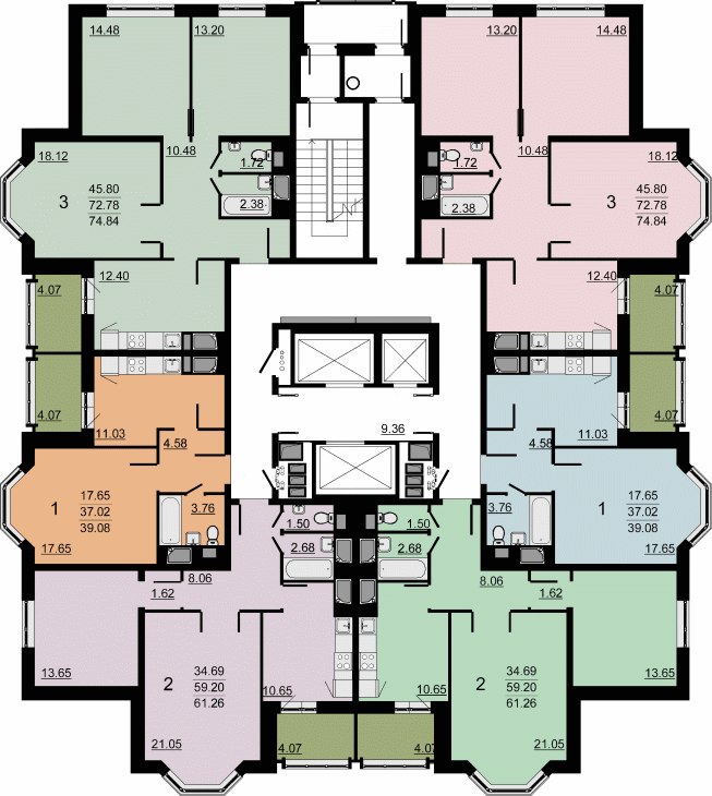 Общее впечатление: аккуратнее, чем на ЛБ. Бригады-славянские. Но как разместиться в 2+1, пусть даже и смежных-идеи напрочь отсутствуют. Общую дверь поставить нельзя из-за выхода к лифтам.
