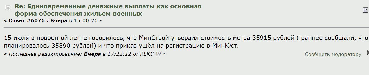 Потому что МинСтрой утвердил стоимость метра 35915 рублей ( раннее сообщали, что планировалось 35890 рублей) и приказ ушёл на регистрацию в МинЮст.