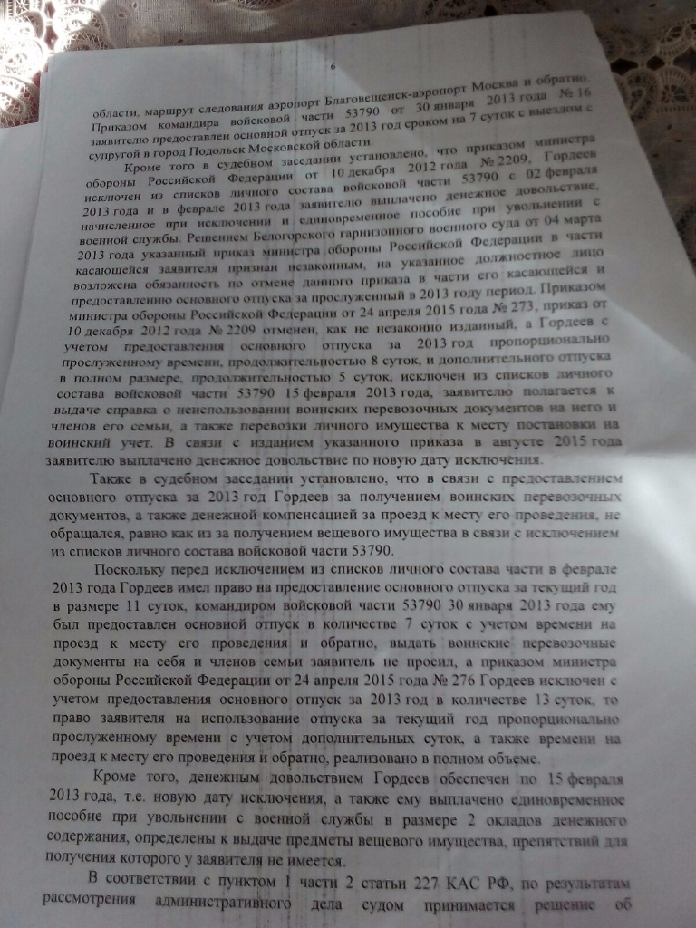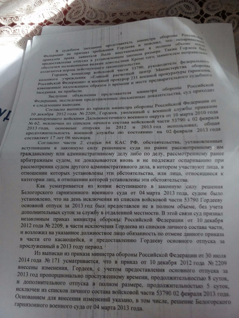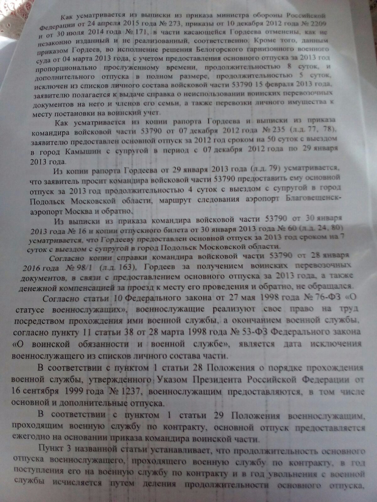 Впоследствии А.Ю.Кихов оспорил в судебном порядке действия начальника подразделения Службы организационно-кадровой работы Управления кадров ФСБ России, передавшего данную жалобу на рассмотрение начальнику Управления ФСБ России по Республике Дагестан. Решением гарнизонного военного суда, оставленным без изменения судом апелляционной инстанции, А.Ю.Кихову в удовлетворении его требования было отказано. При этом суды исходили из того, что решение вопроса о предоставлении отпуска относится к компетенции начальника Управления ФСБ России по Республике Дагестан.