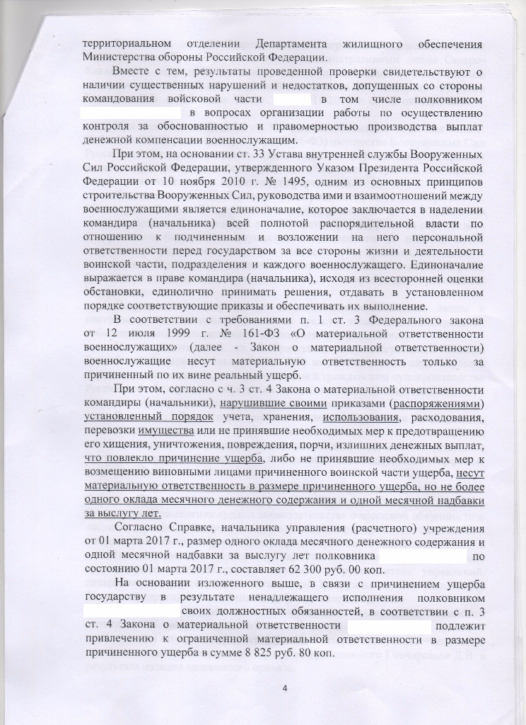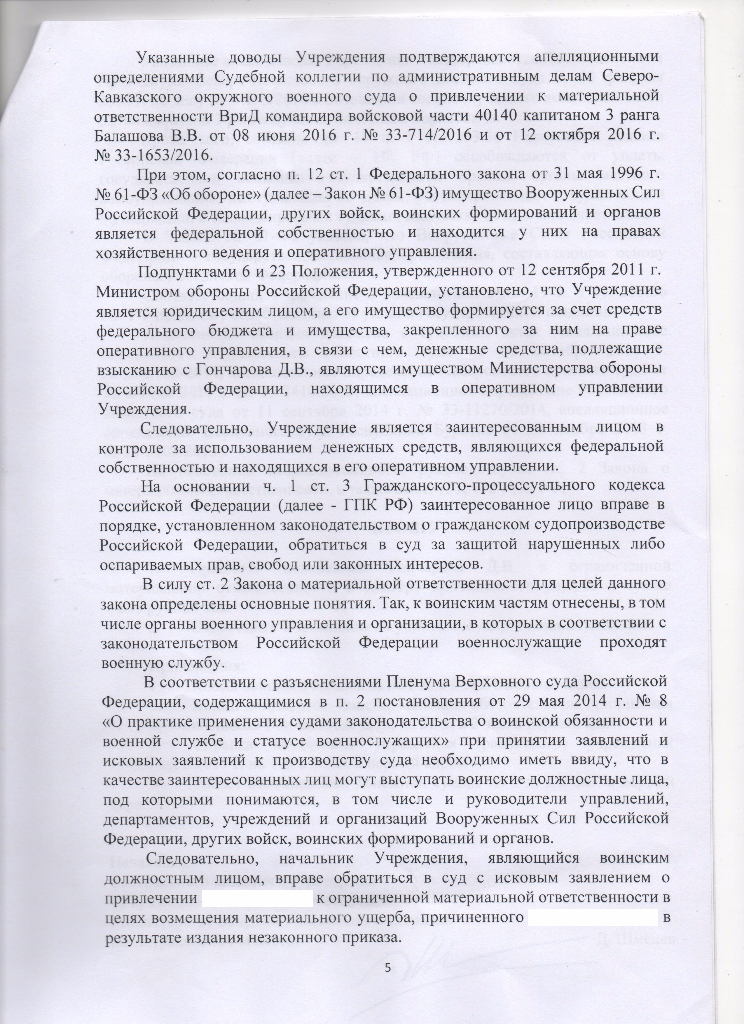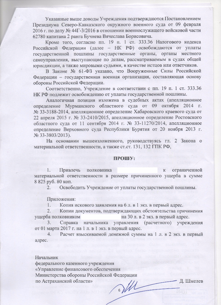 2. Упирайте на то, что сначала необходимо взыскивать с воинов неосновательное обогащение и лишь в случае невозможности - мат.ущерб.