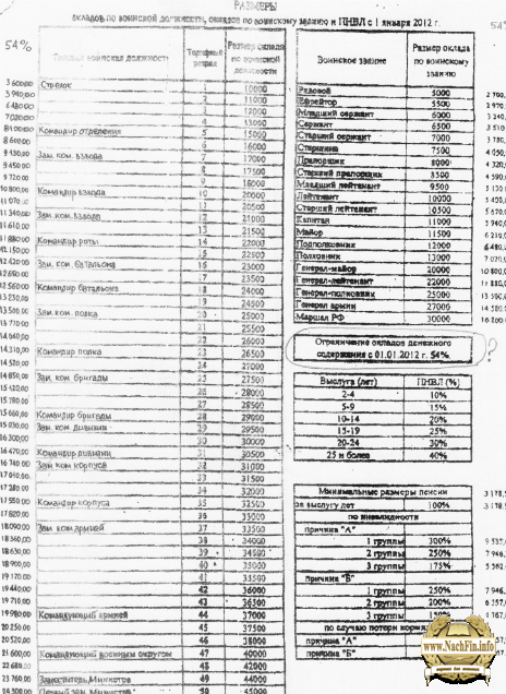 Источников много, а вот достоверности пока нет. Такие цифры были выложены и на сайте Комитета Государственной Думы по обороне но они там честно дописали в конце "Внимание! После вступления в силу постановлений Правительства РФ по установлению окладов денежного содержания военнослужащих, указанные в таблице данные могут быть незначительно скорректированы."
