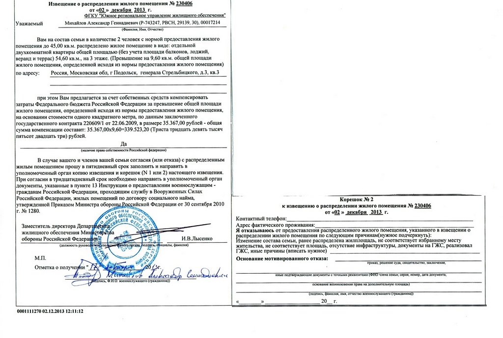 пр.1280 п.12 на ЖП перед распределением должно быть оформлено право собственности РФ и на 90 дней может быть приостановлена реализация извещения( в случае участия в/сл в мероприятиях), п.13 того же приказа 5+ 30 дней на представление документов, п.16 решение о предоставлении ЖП и реализация 14+60 дней.Что после предварительного придет постоянное извещение. ? И опять в103 кабинет?