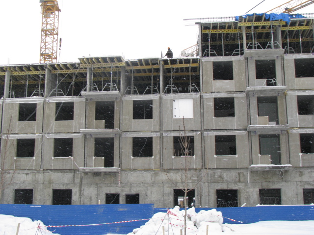 Вот так идет строительство нового 8 квартала в двух шагах от 7 . Видно что строительство идёт необычным способом, используют струбцины(или они по другому называются). Со слов строителей фундамента нет, сами они с такой технологией сталкиваются впервые, но говорят что одобрено самим Пу, значит будет все хорошо . Используются америкосовские материалы, а строят по финской технологии..