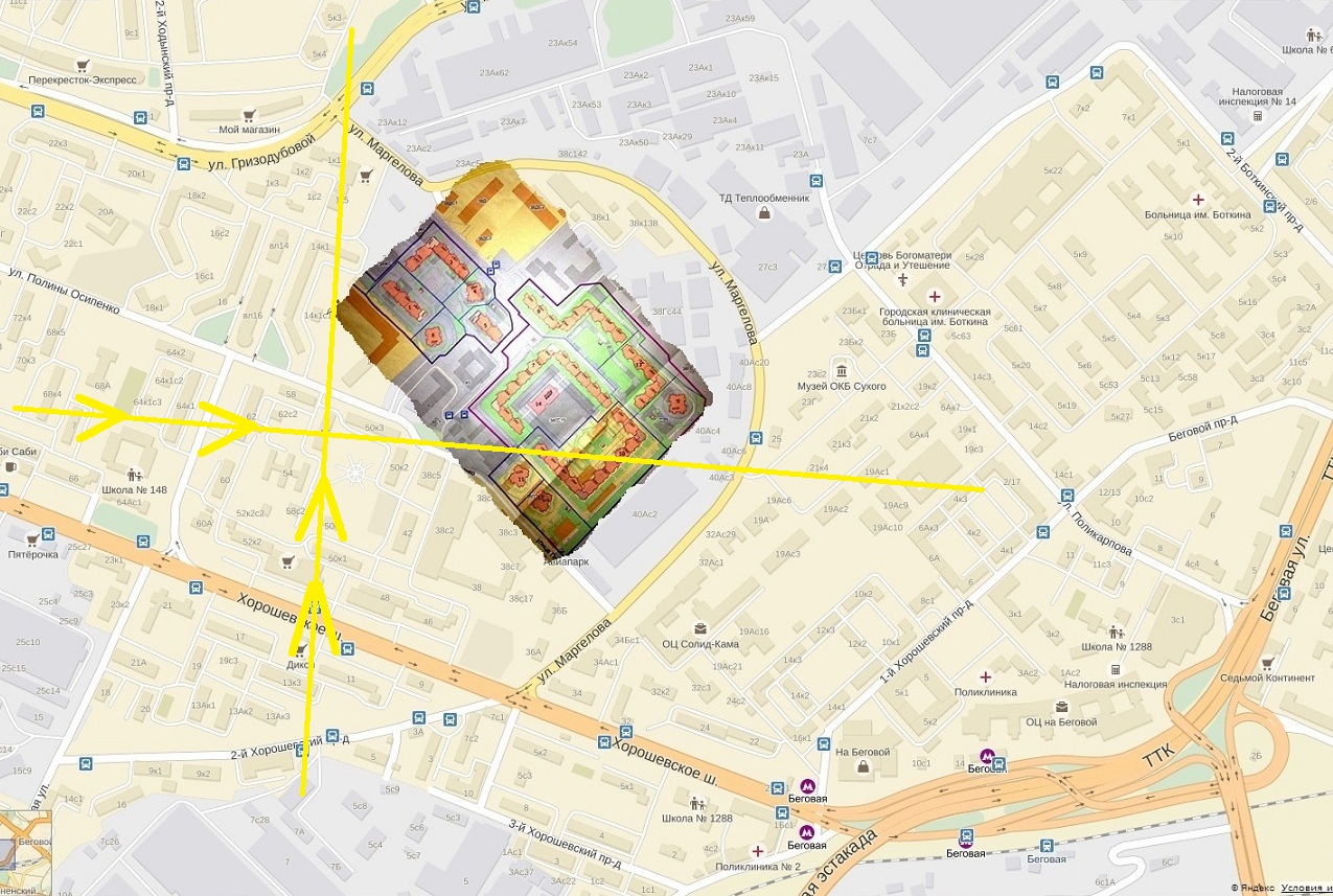 У вас под боком будут Проектируемые проезды и Магисральные улицы. Петровский парк за Ленинградским проспектом, к сожалению.