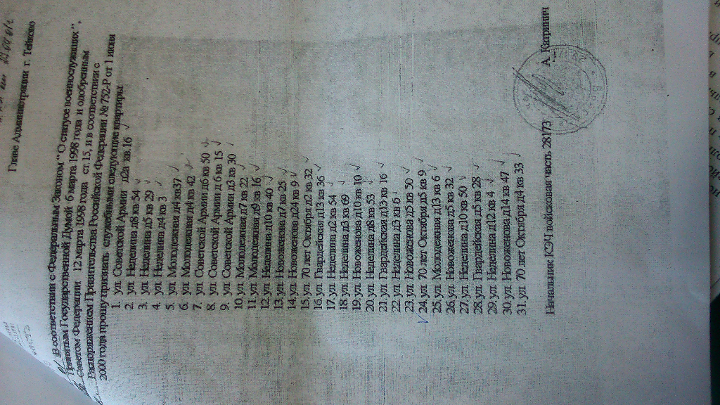 И, что? Знать кто живёт в военном городке и обязанность вести учёт жилищного фонда вещи разные! Есть возможность указать на ПМО, где указана такая обязанность командования (к/ч и гарнизона).QR_BBPOST Был предоставлен поквартирный список всего военного городка.