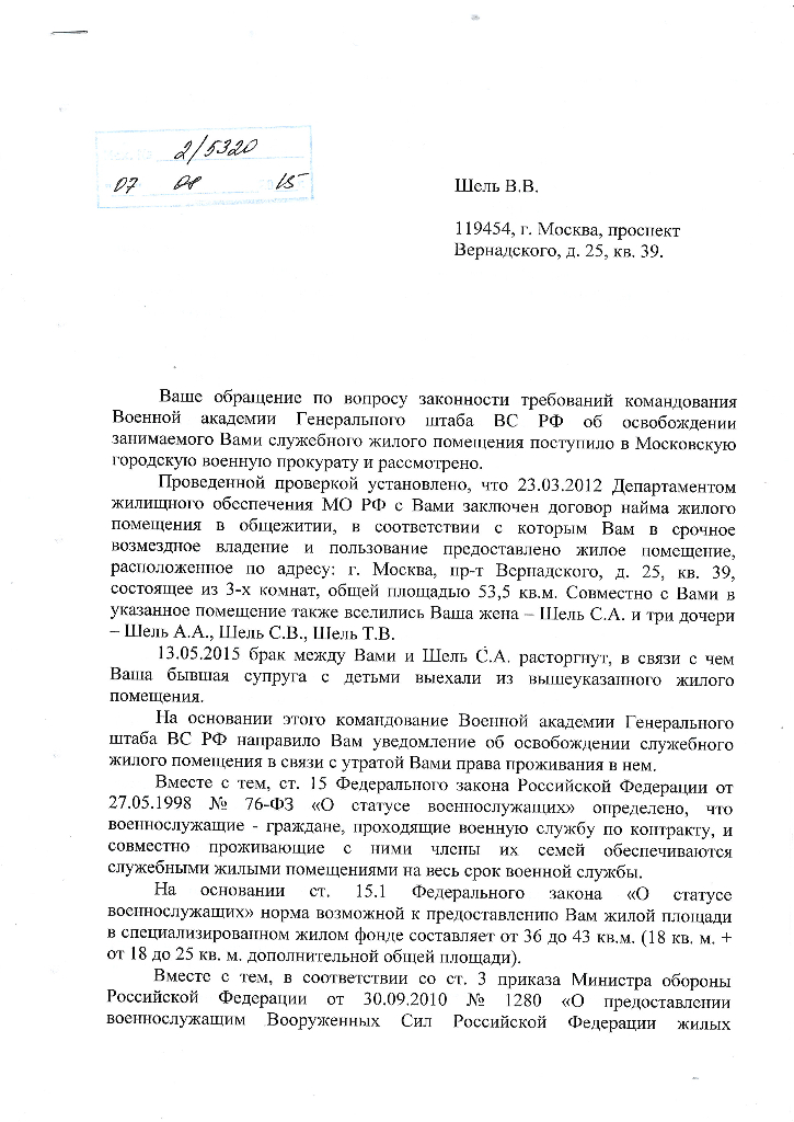 Укажите. "Как видно из представленных материалов ЖП распределено другому военнослужащему, следовательно довод прокурора о наличии у него права на обращение в суд не соответствует закону".QR_BBPOST Прошу :