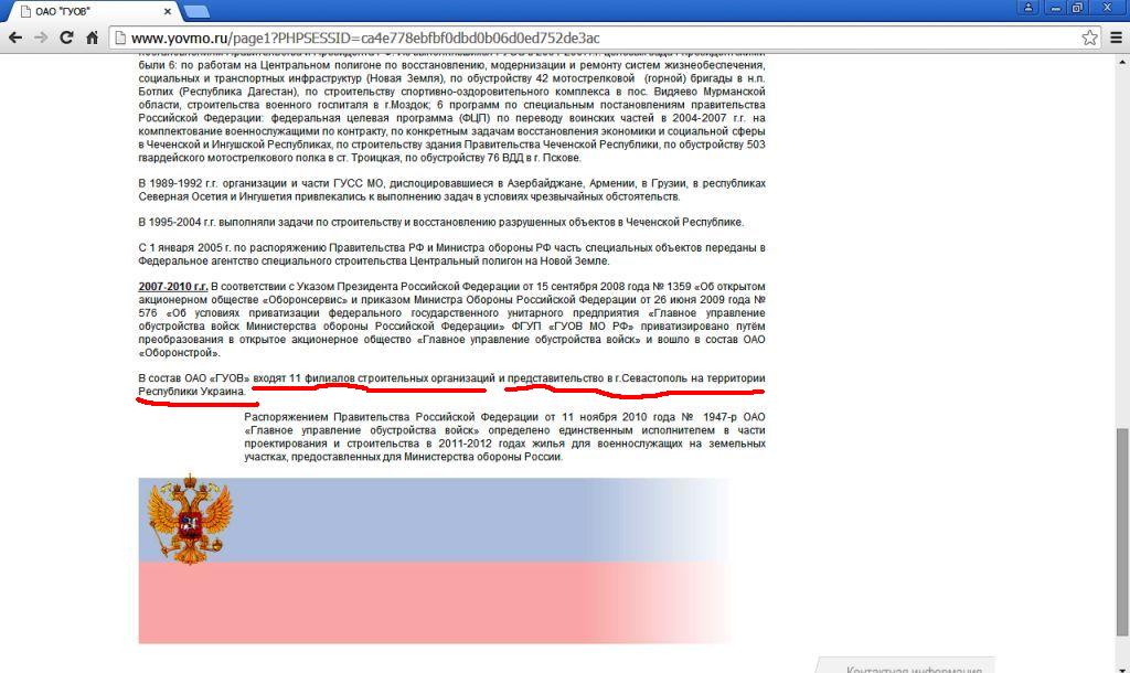 ну и на закуску - ОАО "ГУОВ Минобороны России"продолжает работать в Украине