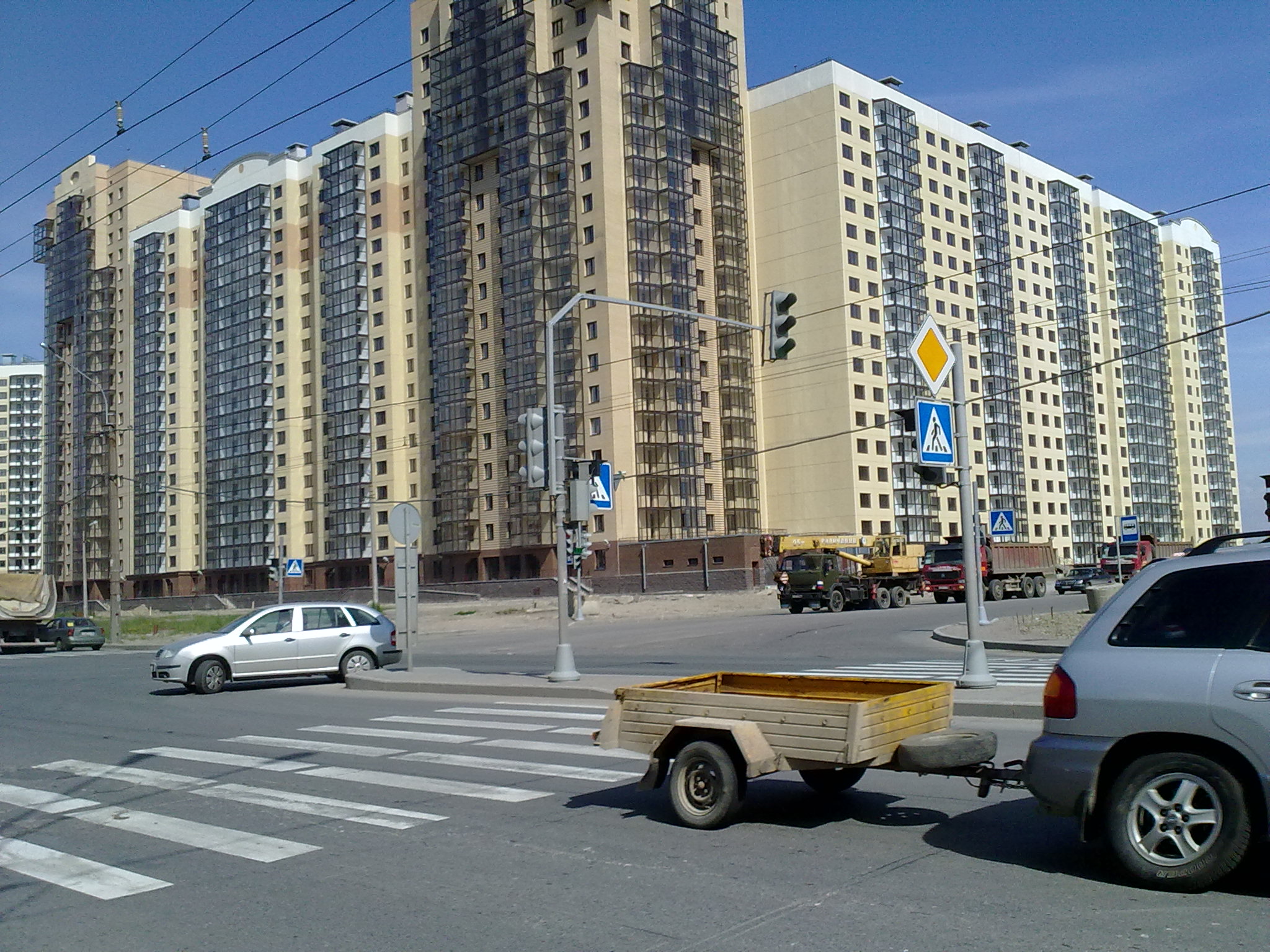 еще одна фотка - сбоку от дома. Куда ни глянь - везде строительство. Район будет классным, рядом Лахтинский залив и Финский