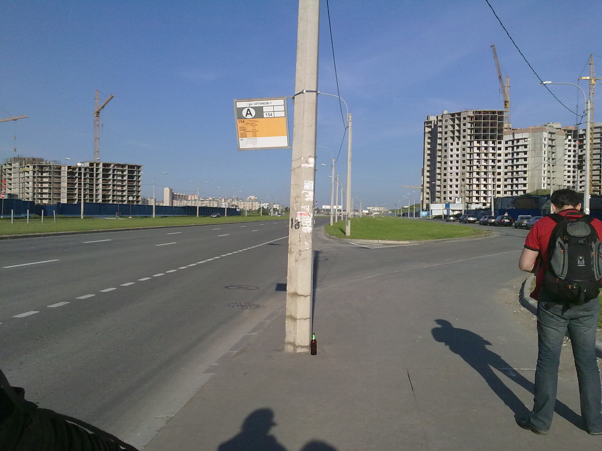 По Вашим объяснениям точно нашёл остановку, ходит в ту сторону только автобус № 154( от м."Старая деревня"). Вид возле "Старой деревни":